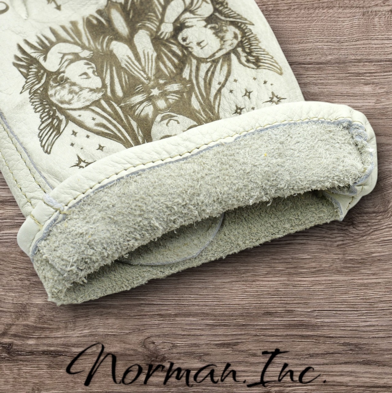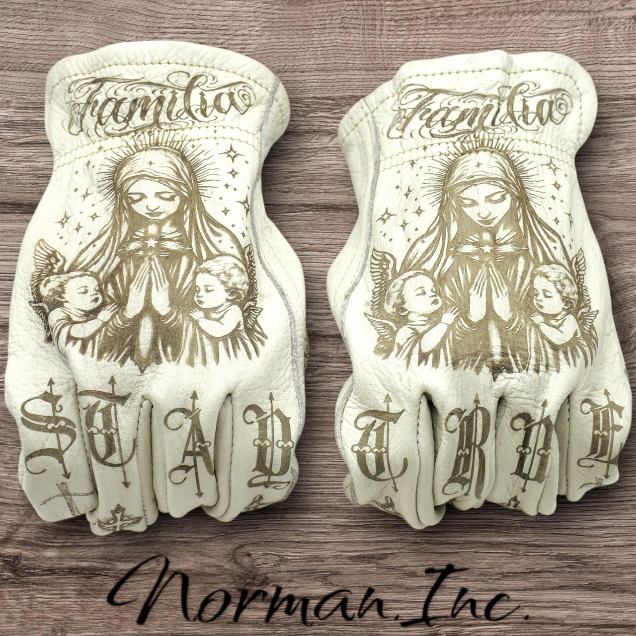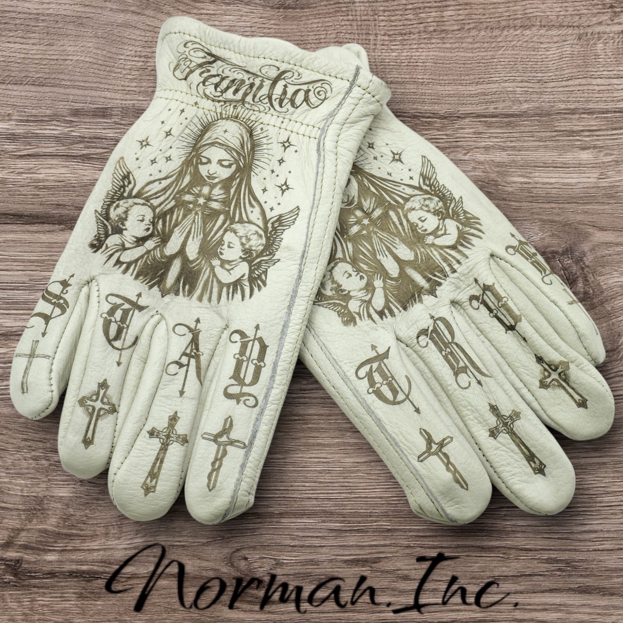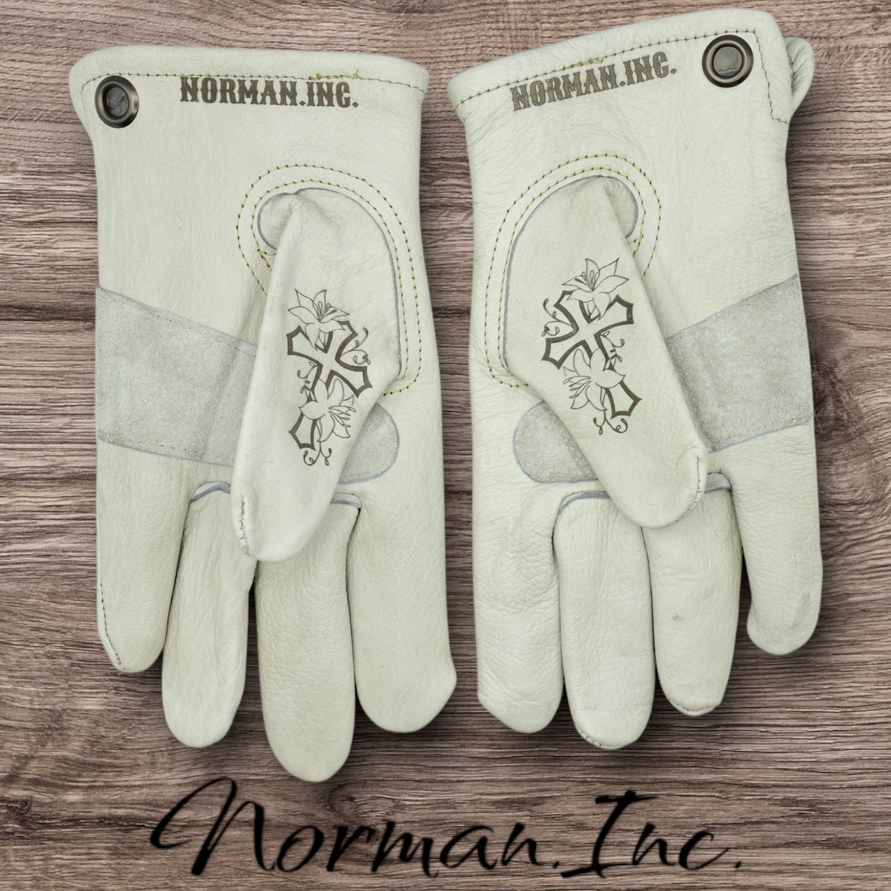 牛革 レザーグローブ ホワイト 白 アメリカン バイク ハーレー カスタム タトゥー 手袋 ツーリング M,Lサイズ