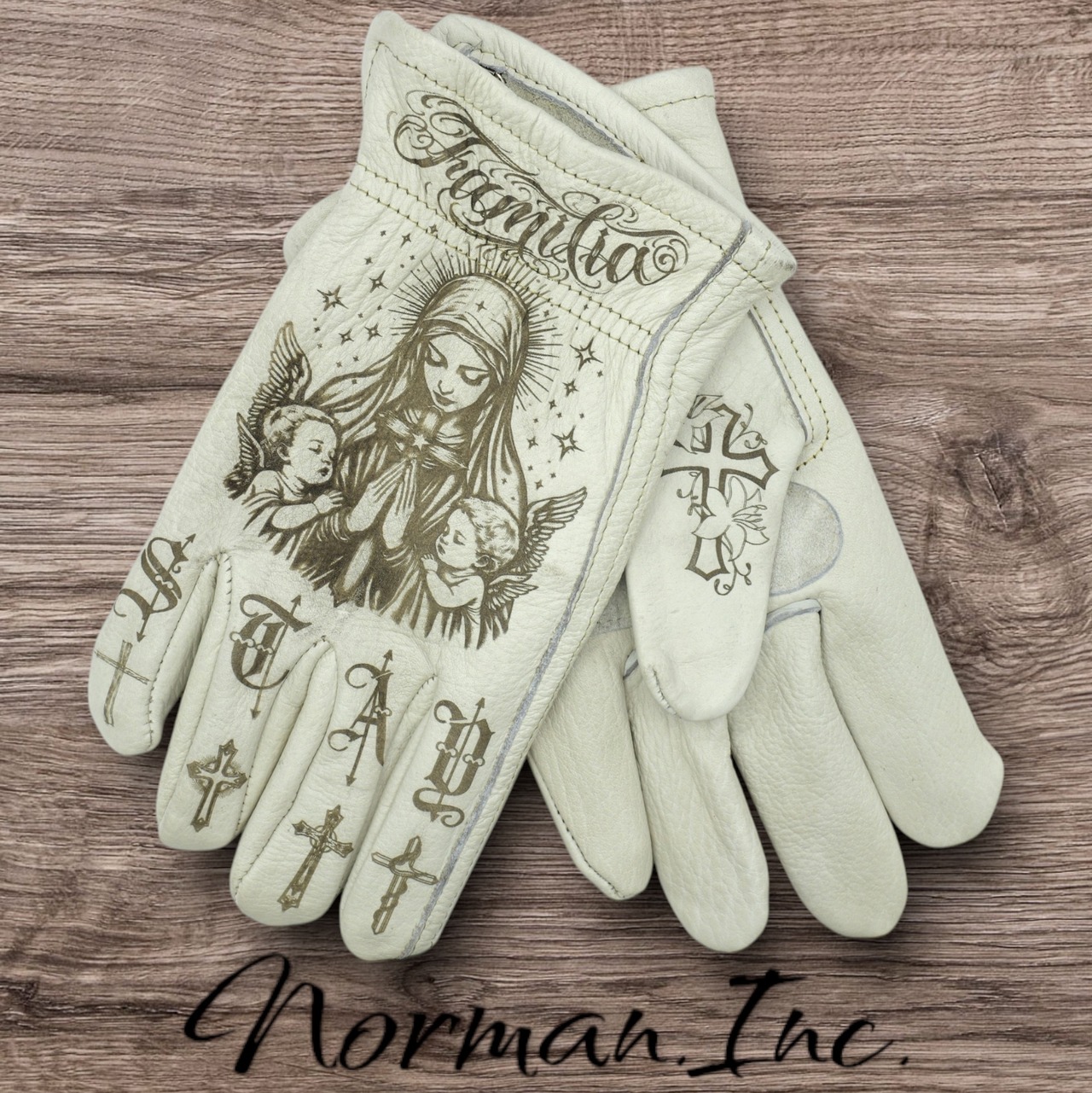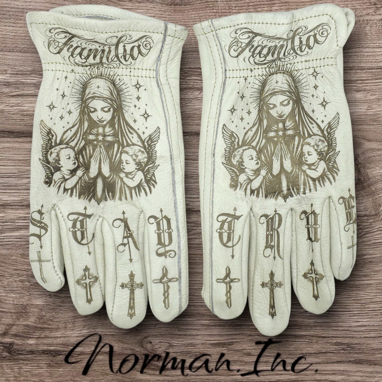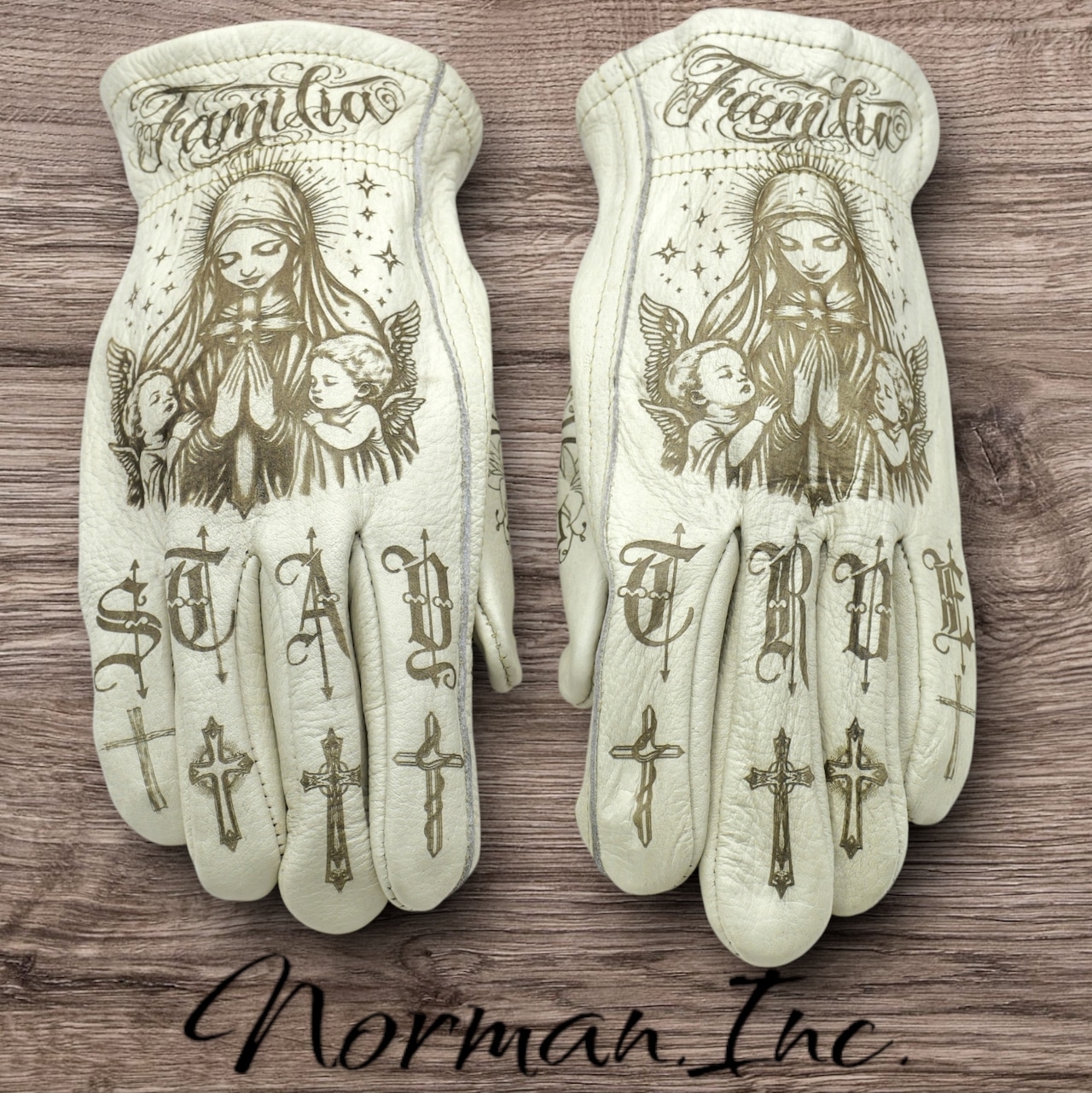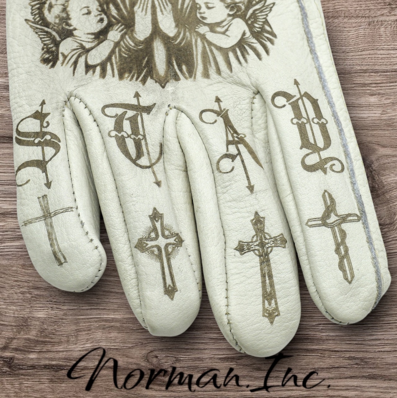 牛革 レザーグローブ ホワイト 白 アメリカン バイク ハーレー カスタム タトゥー 手袋 ツーリング M,Lサイズ