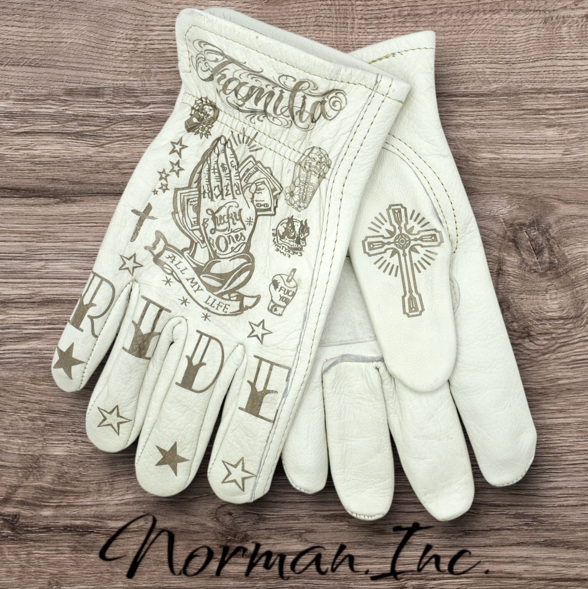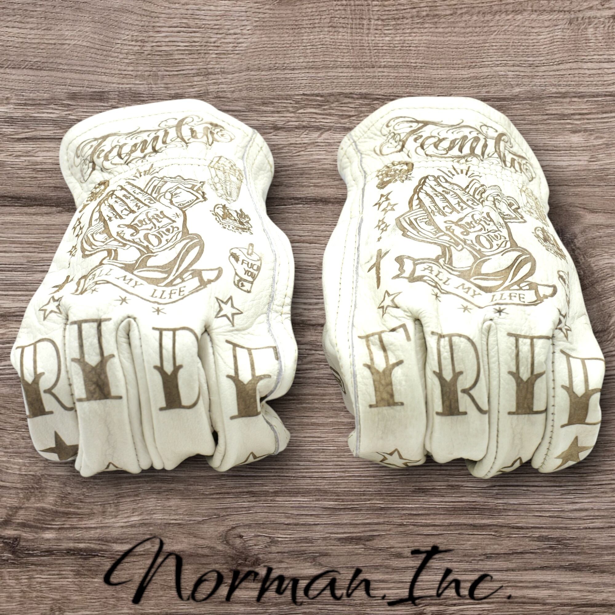 牛革 レザーグローブ ホワイト 白 アメリカン バイク ハーレー カスタム タトゥー 手袋 ツーリング Lサイズ